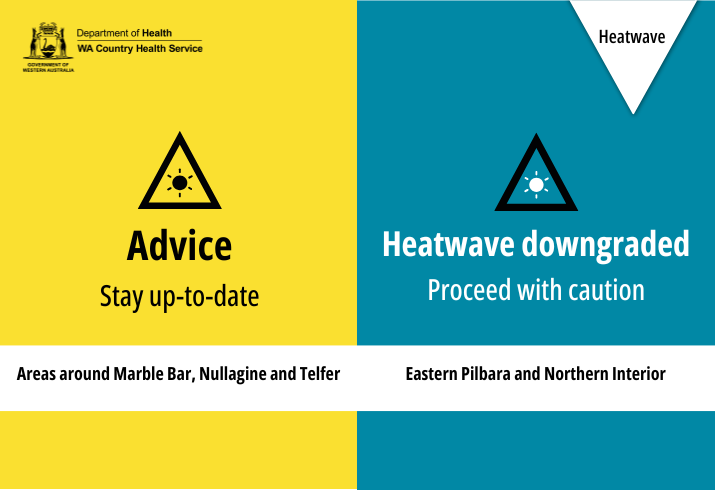 Update as at: 14:31pm, Thursday 22 January 2026. Heatwave Advice - THREAT IS REDUCED - Eastern Pilbara and Northern Interior.